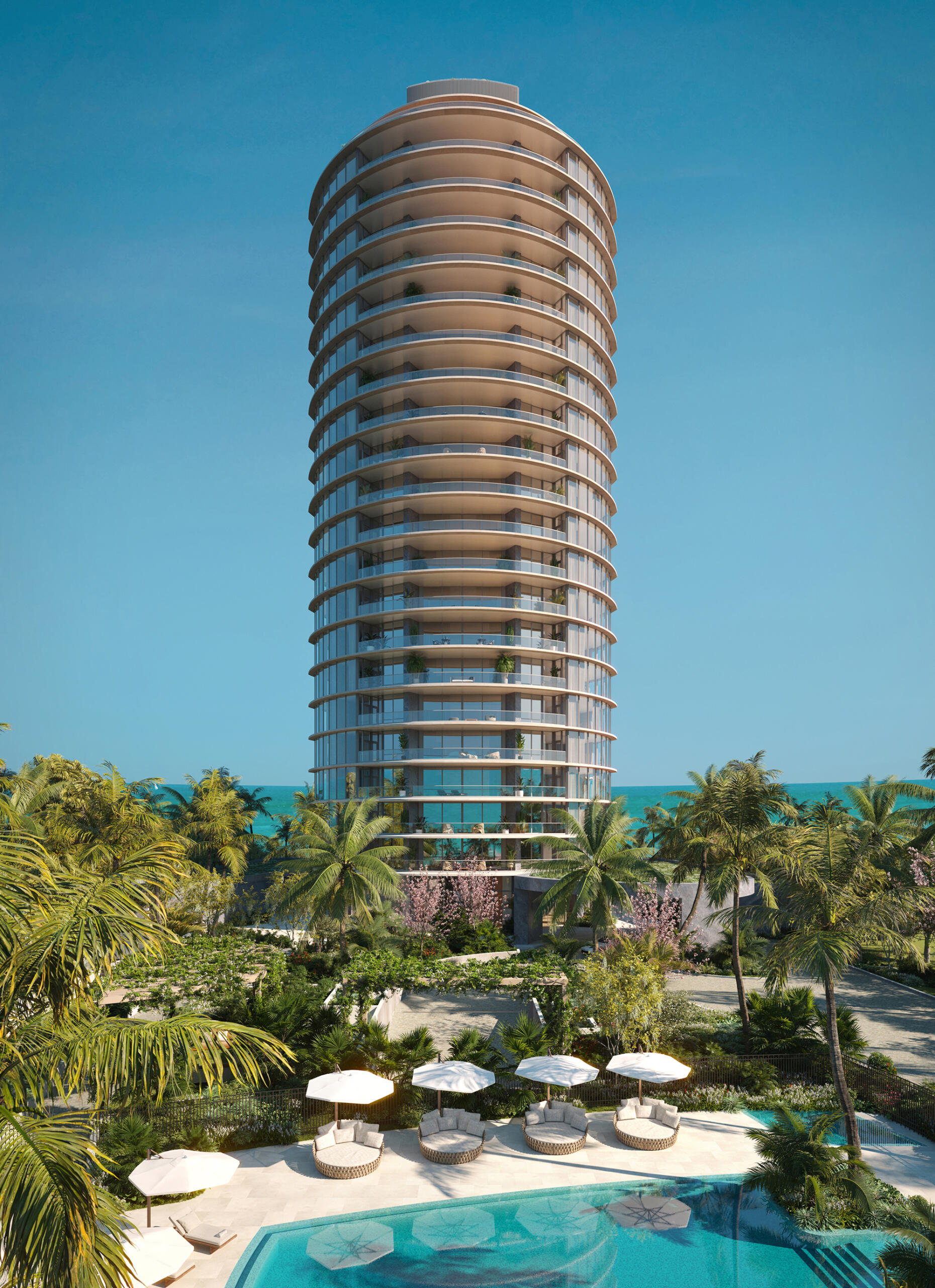 Rivage Bal Harbour features the resort style amenities, including an elegant two-story lobby, full-time concierge, signature oceanfront dining experience, media room, library, breakfast bar, cocktail lounge, activities deck, resort-style pools, outdoor spa, sunbeds, cabanas, poolside food and beverage service, pickleball and padel courts, sunrise pool, indoor-outdoor fitness facilities, sunset pool on the western edge with a bar, spa, sauna, hammam, hot and cold plunge pools, private treatment rooms, beach club, state-of-the-art fitness center, yoga studio, virtual reality game simulato, children’s playroom, bicycle storage, security and valet service, on-site general manager services and more.